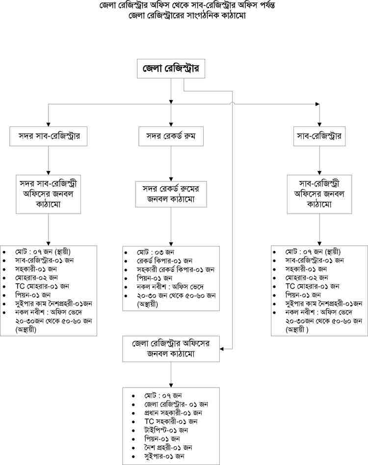 জেলা রেজিস্টার থেকে উপজেলা সাব-রেজিস্টার-এর অরগানোগ্রাম